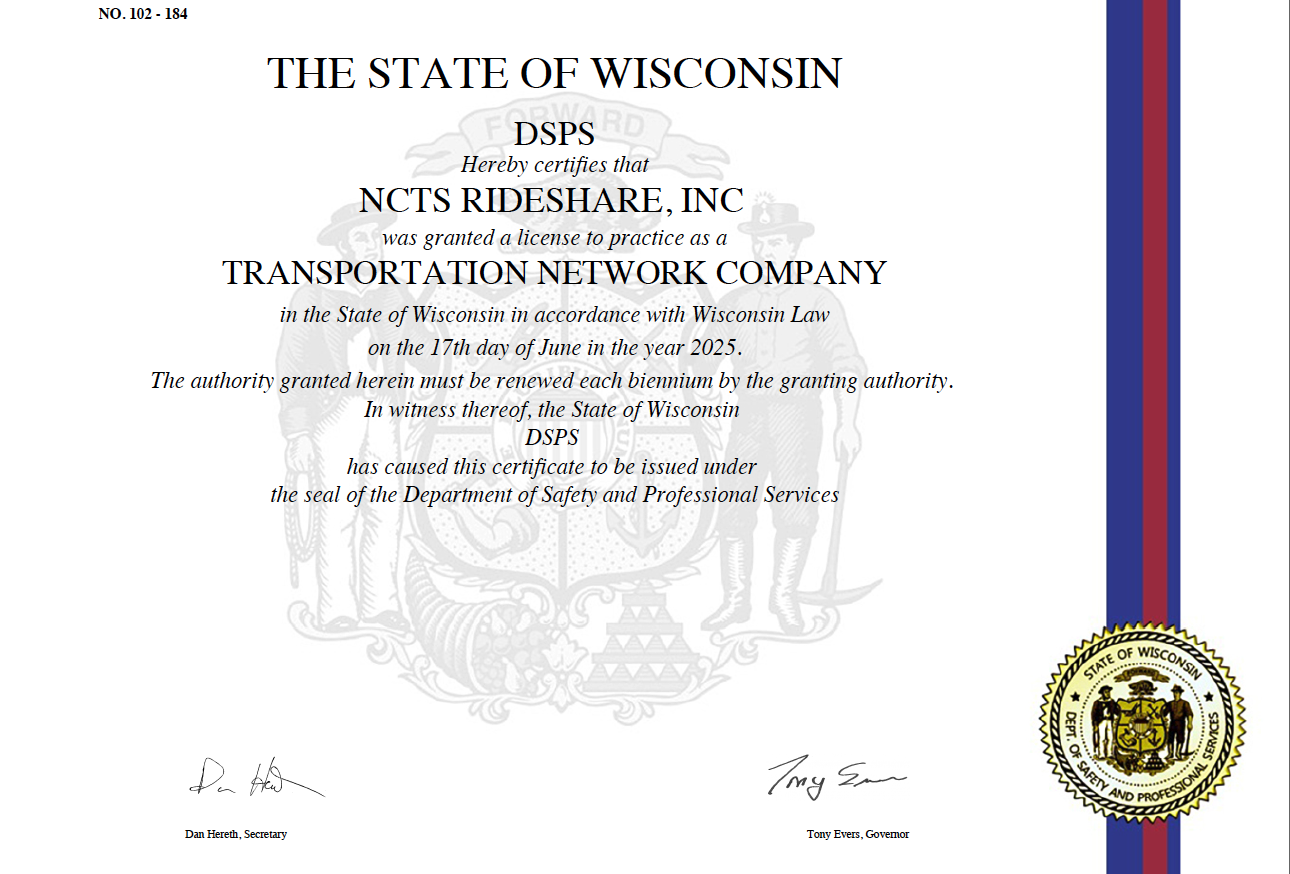 NCTS provides convenient, safe, and affordable rideshare services across the Milwaukee. We connect passengers with trusted local drivers through our easy-to-use app, offering on-demand transportation for daily commutes, errands, and longer trips. Our transparent pricing ensures you pay only for the time and distance traveled, with secure payment options built in. At NCTS, we make getting around simple, reliable, and stress-free.